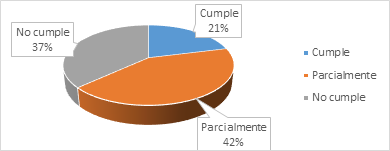 Al aplicar la lista chequeo se obtiene que de las 19 interrogantes existe un cumplimiento de un 21% tal como se muestra en la figura 1: