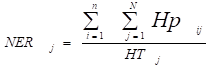 Hpij: horas-hombre perdidas por bajas laborales relativas al riesgo “i” en el equipo “j” (h/baja). HTj: horas trabajadas en el equipo “j” en el período (h). n: Tipos de riesgos presentes en el equipo “j” N: Cantidad de accidentes con bajas laborales relativas al riesgo “i”. NERj: Nivel de exposición al riesgo en el equipo “j”. |