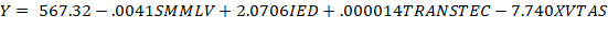 signos negativos, y tres variables (SMMLV, ied, transtec) no son significativamente estadísticas al presentar valores inferiores a