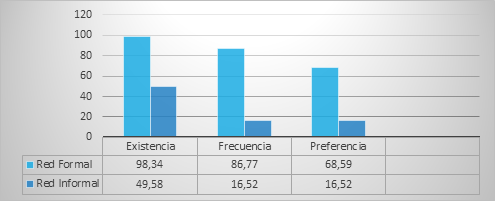El análisis de este indicador Redes (Figura 3) suministra tres características fundamentales: Existencia (Red Formal o Red Informal), Frecuencia y Preferencia.