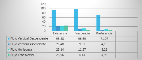 Para el análisis de los flujos (Figura 4) indicador resulta conveniente tomar en cuenta: Existencia (flujo vertical descendente, flujo vertical ascendente, horizontal y transversal), frecuencia y preferencia